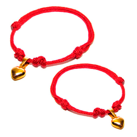 Producto: Pack Pulsera roja mamá y bebé Corazón Gold. Dos pulseras elaboradas con cordón coreano rojo ajustable y dijes en oro de 18k con forma de corazón bombeado.